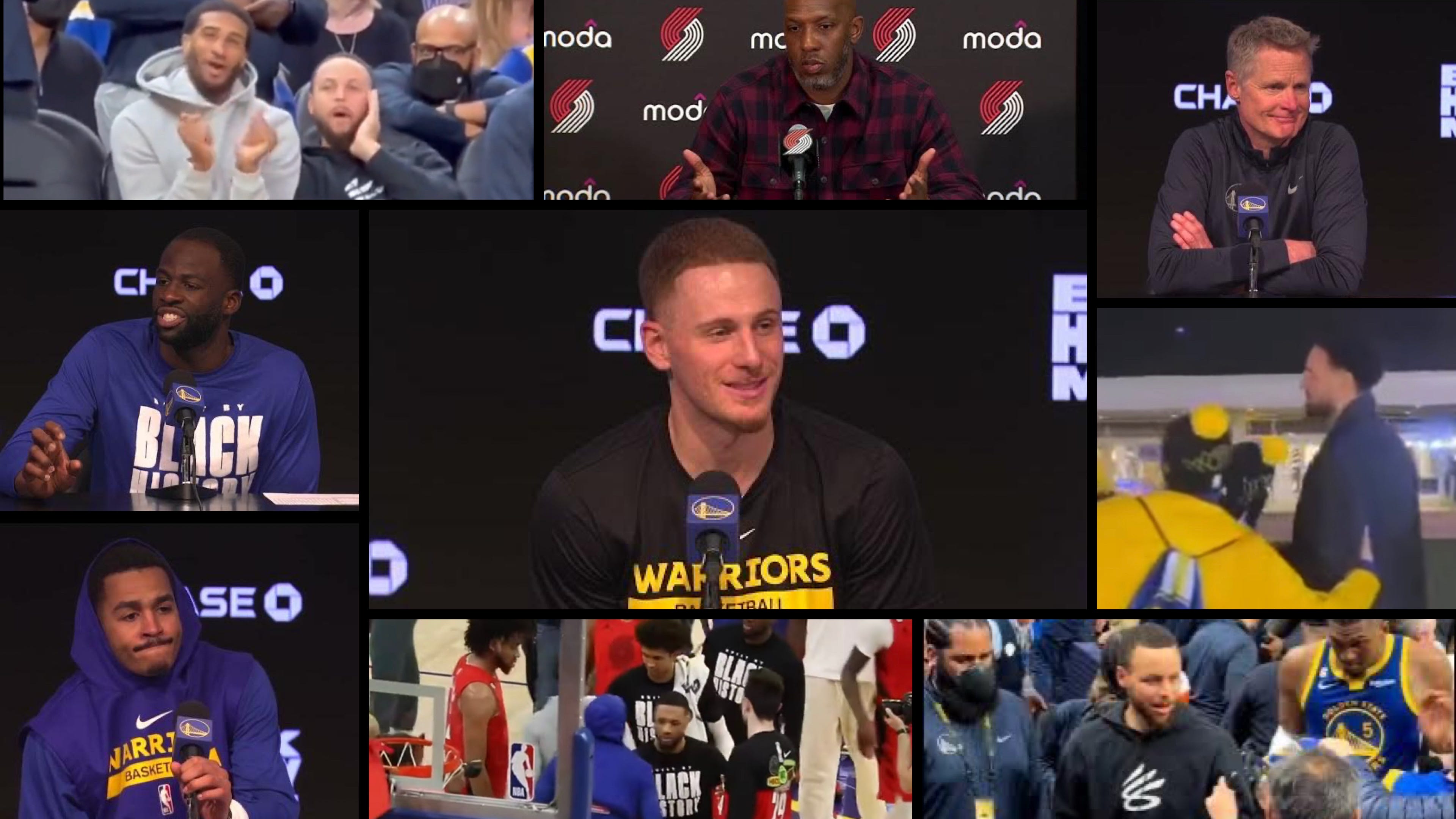 • Draymond Green on-court postgame: “we finished the half strong… momentum… executed… Jordan Poole… Donte… Loon… started on the defensive end… 40 points in the second half, 41 in the first quarter.”