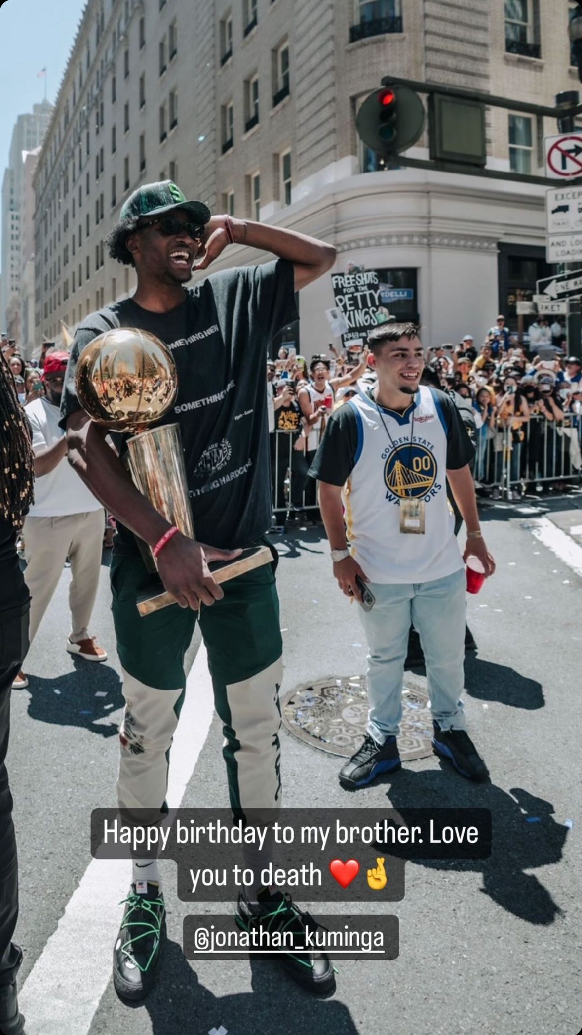 Kuminga’s birthday was yesterday and one of his managers posted this from the 2022 championship parade which made me notice his keen fashion sense (as I mentioned before I still have footage g from his recent visit to Milan, Italy for the BOSS fashion show), wearing Off White kicks with the neat lacing.
