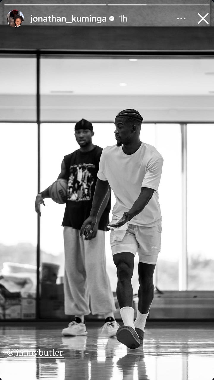 By the way, EyeG posted a picture from Stanford University on his Instagram the other day and JK followed up with one, too, training with Jimmy Butler at what looks like Jimmy’s home gym in Poway, CA (I could be wrong about that):