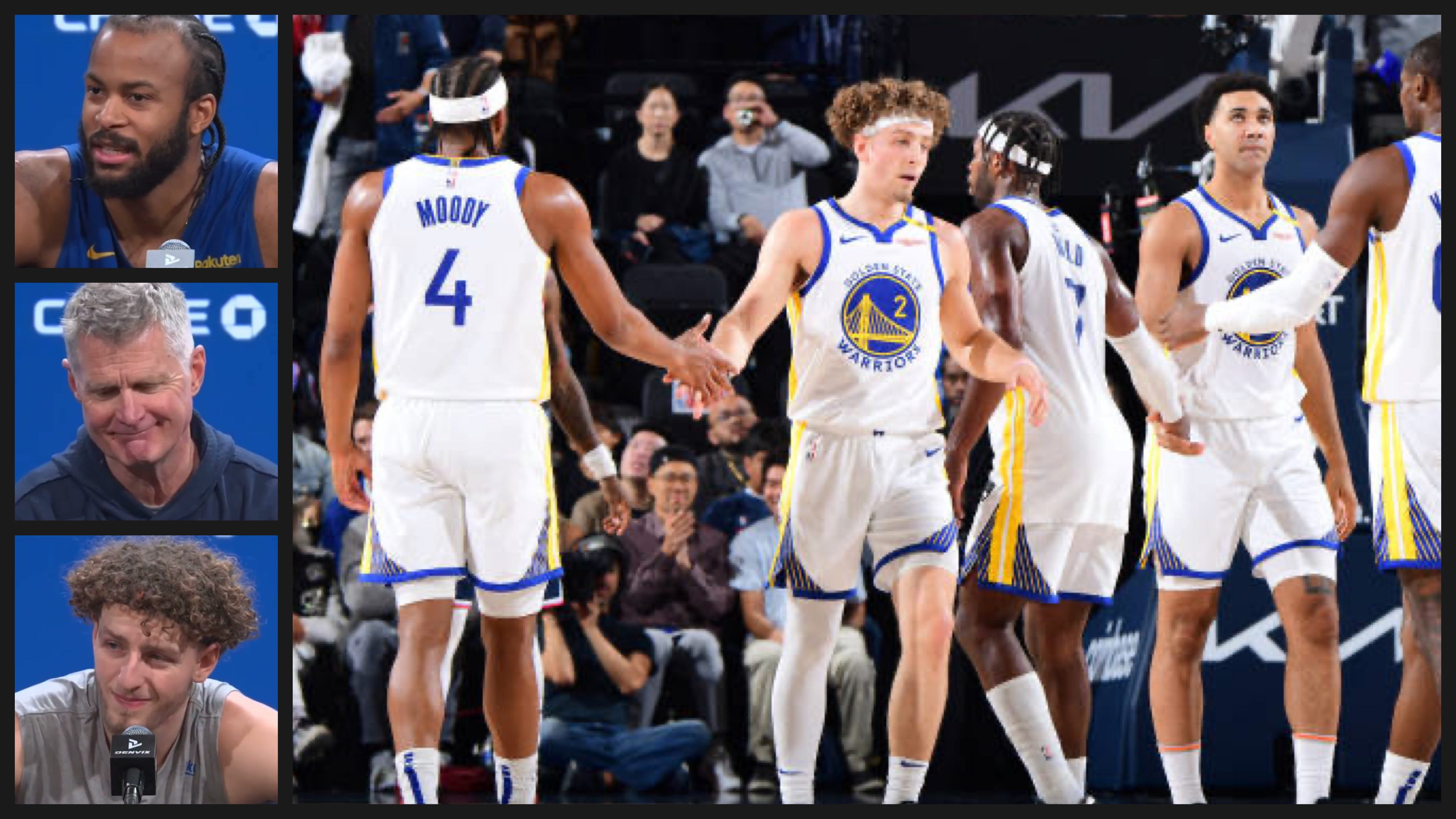 Next up: a detailed rundown of the state of the Warriors, according to what was said recently by Steve, Mo and even Brandin Podziemski, who also went on the podium after practice.