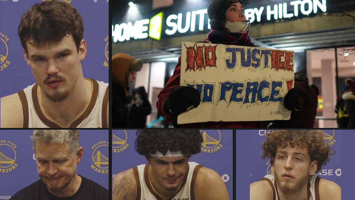 With the Timberwolves-Warriors game, Part Deux (i.e., second of the away back-to-back), being a blowout, much of the postgame was spent talking about the ICE protests and aftermath of the murder of nurse Alex Pretti, see below for captioned videos and transcripts.